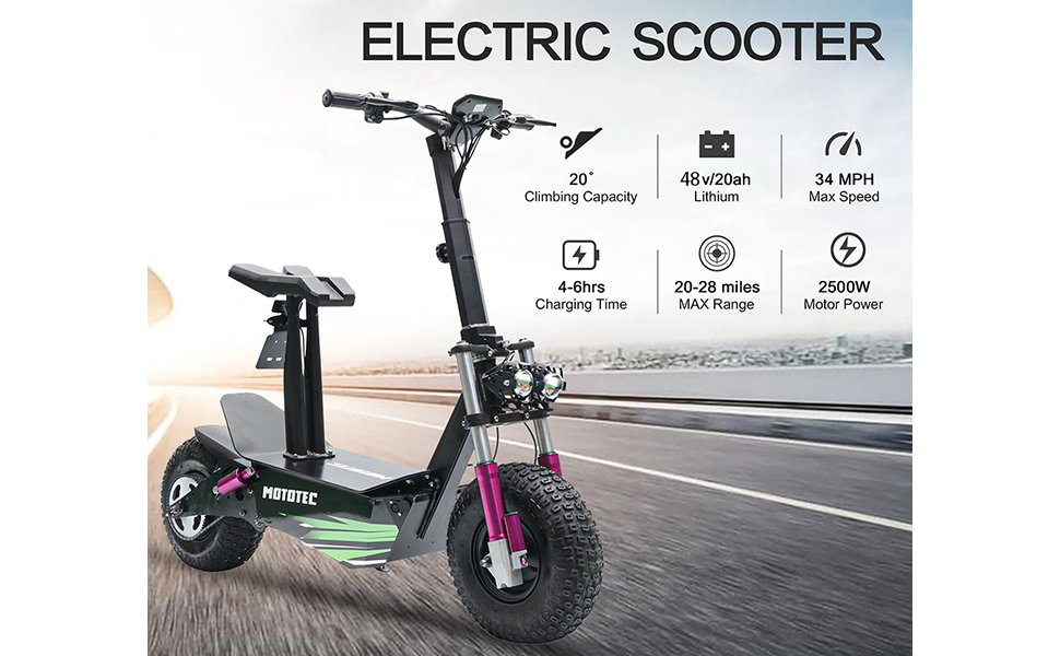 [2500W Powerful Motor]-electric scooter features powerful motors, 48V 2500W high speed brushless, can achieve the max speed 32 MPH(weight dependent).You can enjoy the exciting riding.